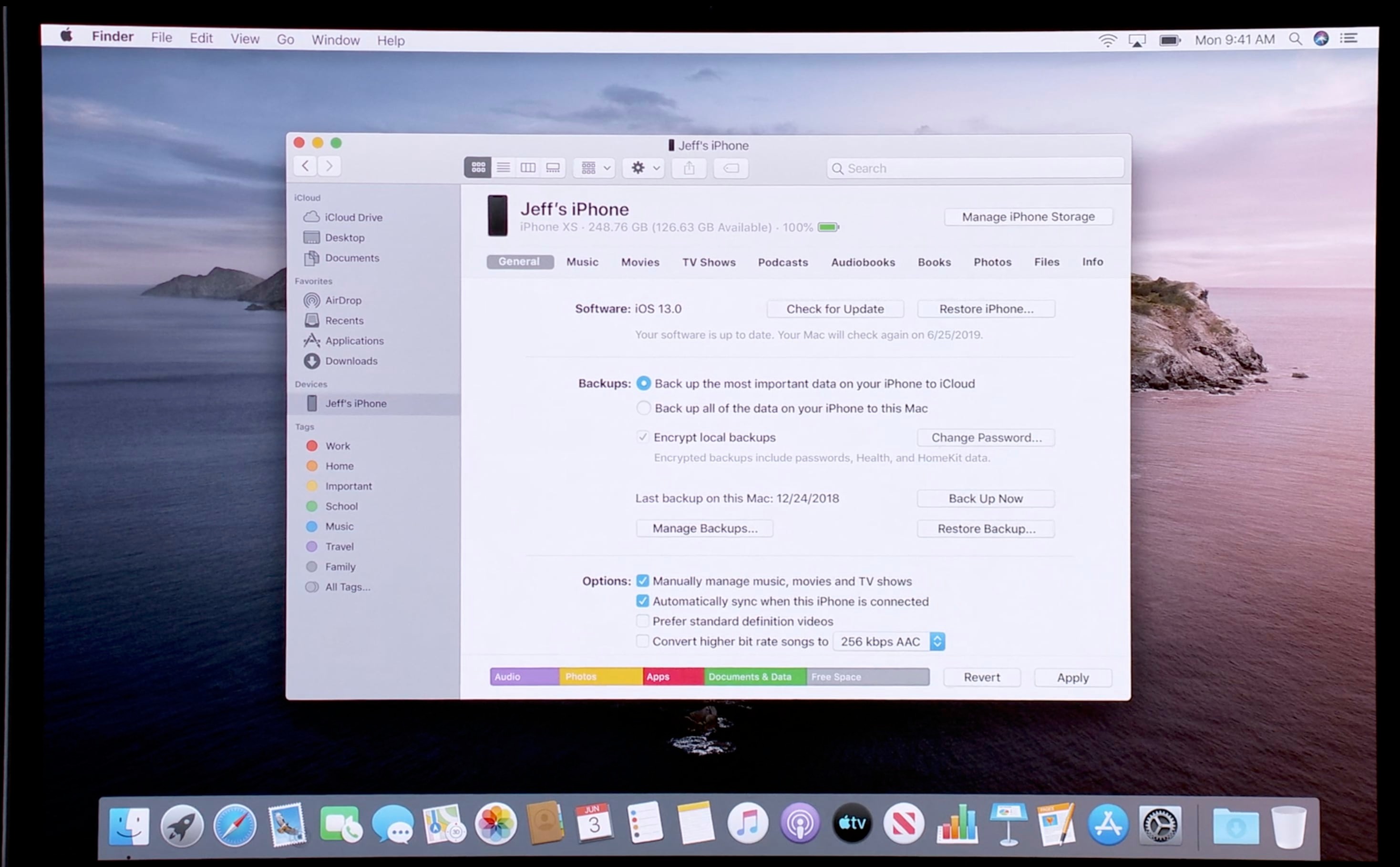 Bên cạnh đó, giờ đây người dùng khi cắm các iDevice lên các dòng máy Mac thì thông tin thiết bị sẽ xuất hiện ngay trong trình Finder, thay thế cho iTunes trước đây, khá tiện lợi.