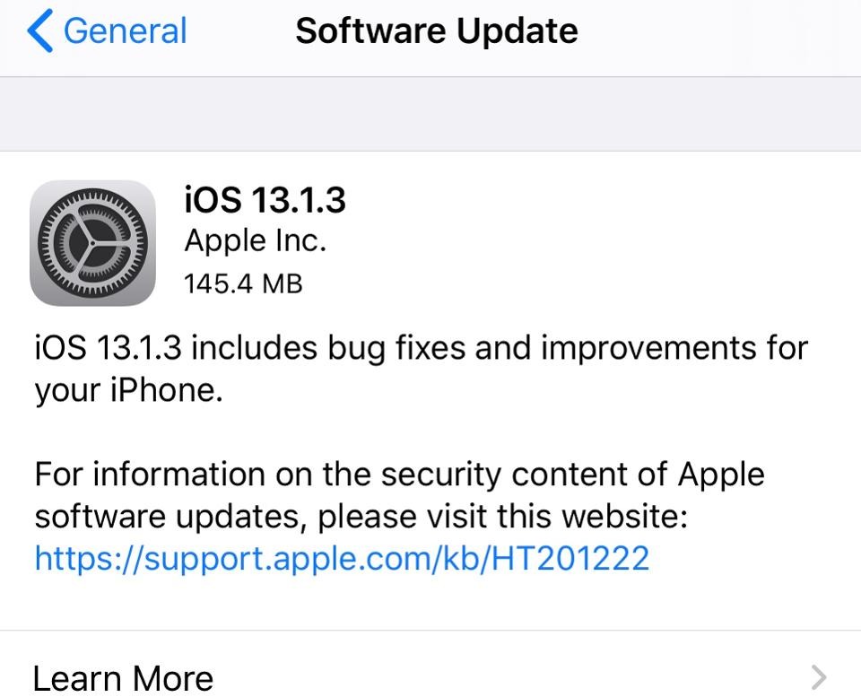 Rạng sáng nay theo giờ Việt Nam, Apple đã chính thức phát hành phiên bản iOS 13.1.3 tiếp theo sau hơn hai tuần phát hành iOS 13.1.2. Như thường lệ, phiên bản iOS lần này không mang tới bất kỳ tính năng mới nào cho các thiết bị iPhone và iPad mà chỉ tập trung vào sửa các lỗi còn tồn đọng trên các phiên bản trước đó.