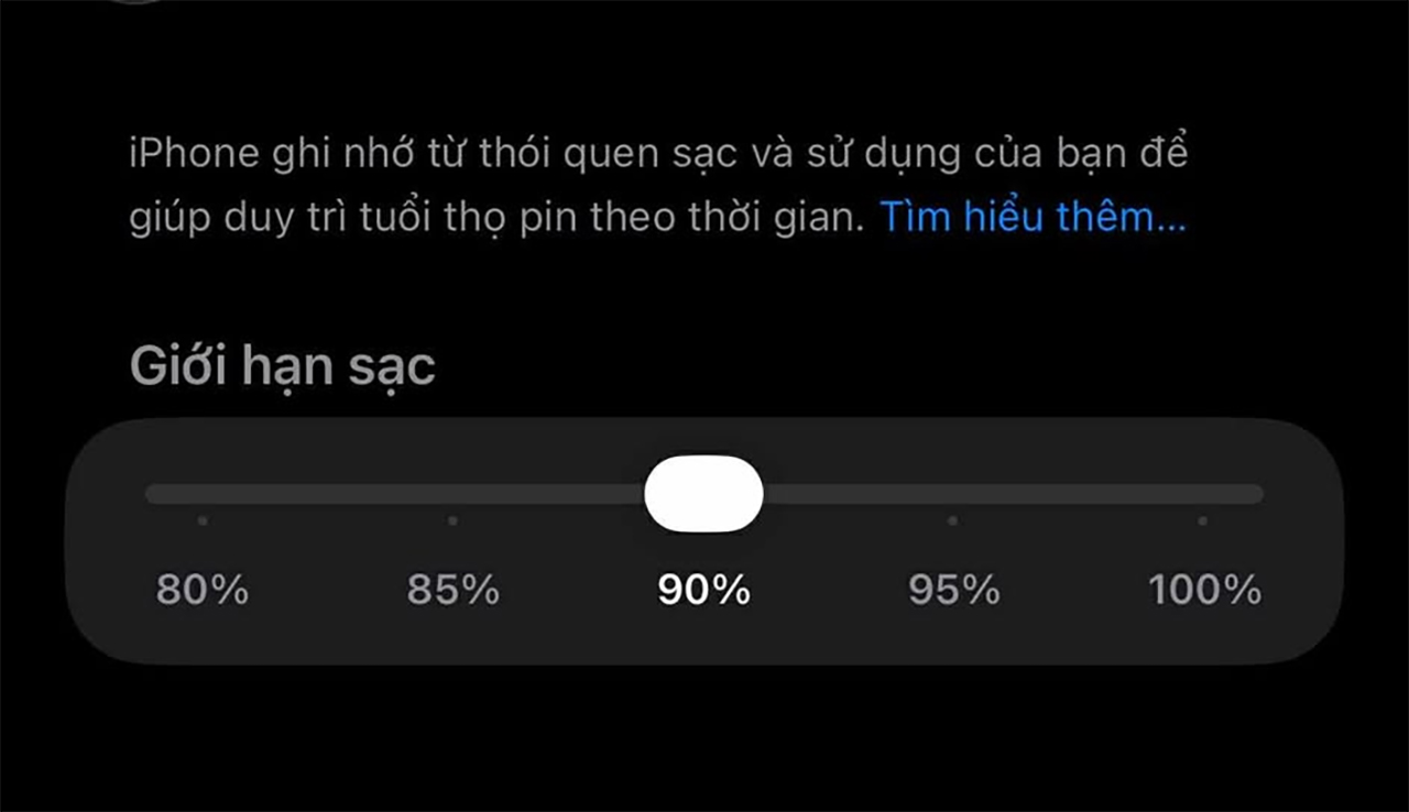Giảm thời gian pin bị giữ ở mức 100%, giảm áp lực hóa học lên cell pin