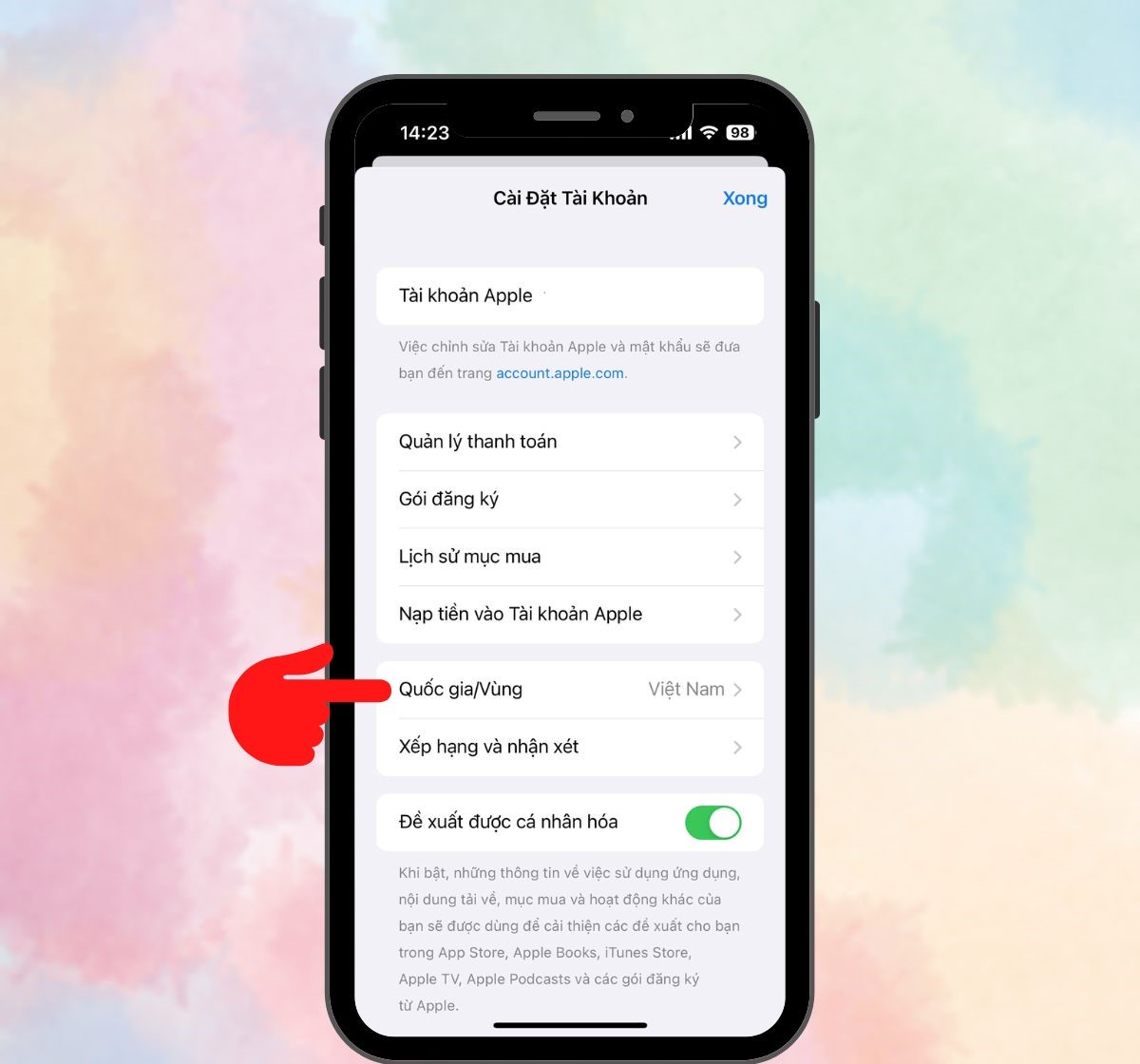 Bước 4: Thay đổi vùng/quốc gia