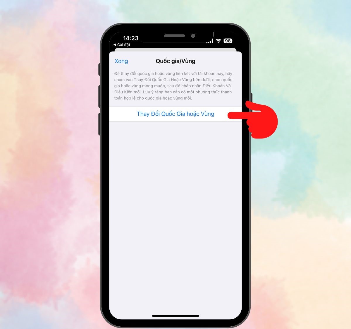 Nhấn Change Country or Region (Thay đổi quốc gia hoặc vùng)