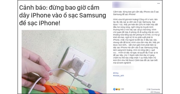 Cụ thể, một bài đăng về việc cắm sạc iPhone với củ sạc Samsung đã thu hút sự chú ý của rất nhiều người - tuy chỉ là một cách để bắt đầu câu chuyện hơi giật gân rồi bất ngờ hài hước lái sang nội dung khác, không hề liên quan đến chất lượng sạc pin, nhưng nhìn chung vẫn gây nên nhiều thắc mắc về vấn đề này.