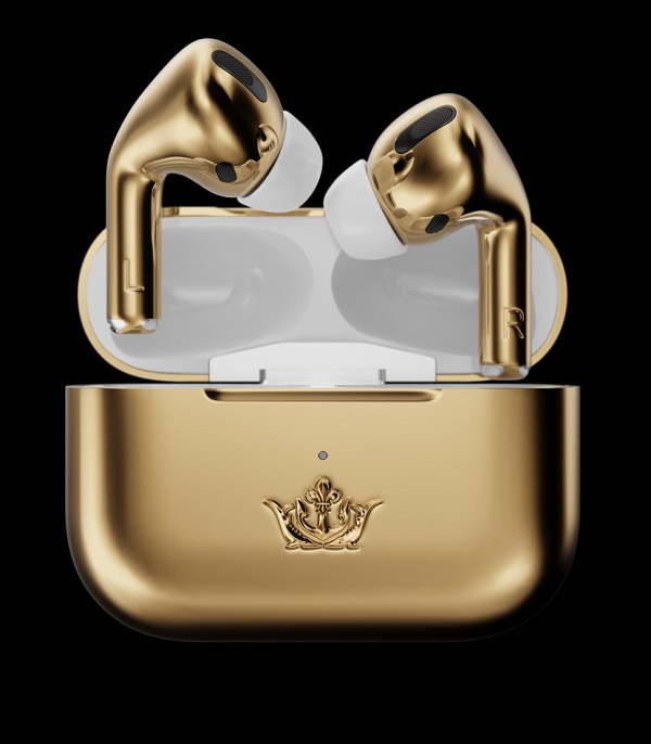 Nếu phiên bản iPhone 11 Pro Max chế tác từ mảnh vỡ tàu Titanic và tàu vũ trụ với mức giá lên đến hơn 800 triệu VNĐ chưa đủ làm bạn thỏa mãn thì mời bạn chiêm ngưỡng AirPods Pro phiên bản vàng ròng với mức giá hơn 1.57 tỷ VNĐ.