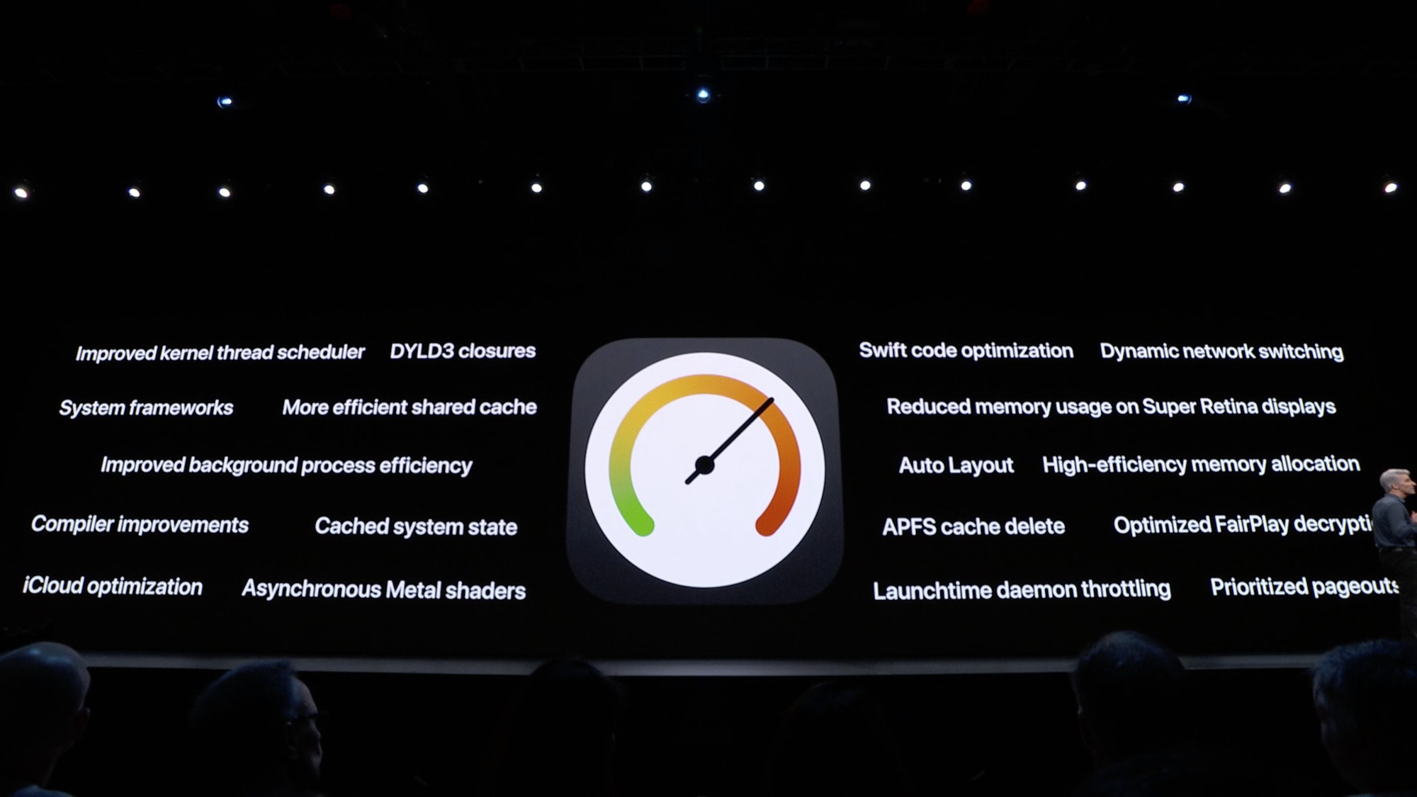 Hiệu năng là điều đầu tiên mà Apple nhắc tới, khi giờ đây iOS 13 có thể cho tốc độ mở ứng dụng nhanh hơn tới 2 lần so với iOS 12. Đây là một tin mừng với những người dùng đang sử dụng các thiết bị iOS đời cũ. Không chỉ vậy, các ứng dụng tải về từ Store cũng sẽ có kích thước giảm còn một nửa và 60% đối với các bản cập nhật. Face ID giờ đây cũng sẽ cho tốc độ nhận diện nhanh hơn 30%.