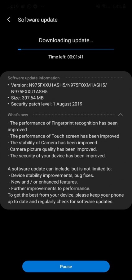 Bản cập nhật bao gồm một số cải tiến quan trọng như cải thiện nhận dạng vân tay, chất lượng camera, hiệu suất màn hình cảm ứng và còn đi kèm với bản vá bảo mật Android tháng 8.