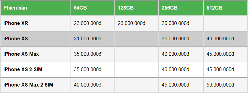 Giá niêm yết của iPhone XS là 999 USD và iPhone XS Max là 1099 USD.