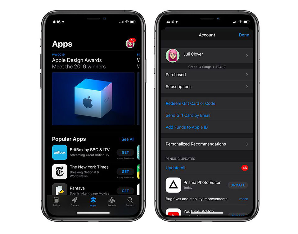 Apple đã chuyển giao diện cập nhật ứng dụng trong iOS 12 để nhường chỗ cho Apple Arcade. Tab Apple Arcade mới thay thế tab Update trước để cung cấp quyền truy cập dễ dàng vào dịch vụ chơi trò chơi sắp tới.