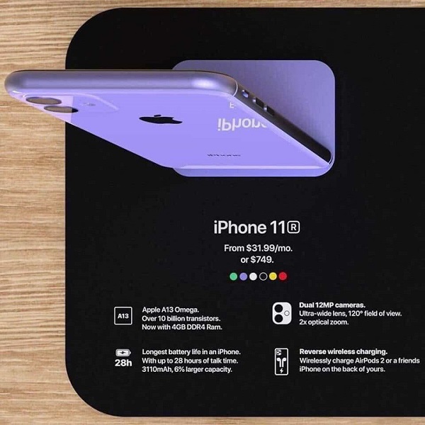Hình ảnh được chia sẻ cho thấy iPhone 11r có giá bán 749 USD (khoảng 17.3 triệu đồng) hoặc 31.99 USD/tháng với hợp đồng nhà mạng, mức giá này tương đương với giá bán của iPhone Xr lúc ra mắt. Máy có 6 màu khác nhau như Xanh, Tím, Trắng, Đen, Vàng và Đỏ.