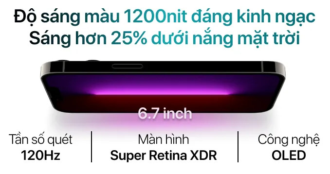 Màn hình OLED Super Retina XDR 6.7 inch, tần số quét 120Hz cho trải nghiệm vuốt chạm mượt như lụa