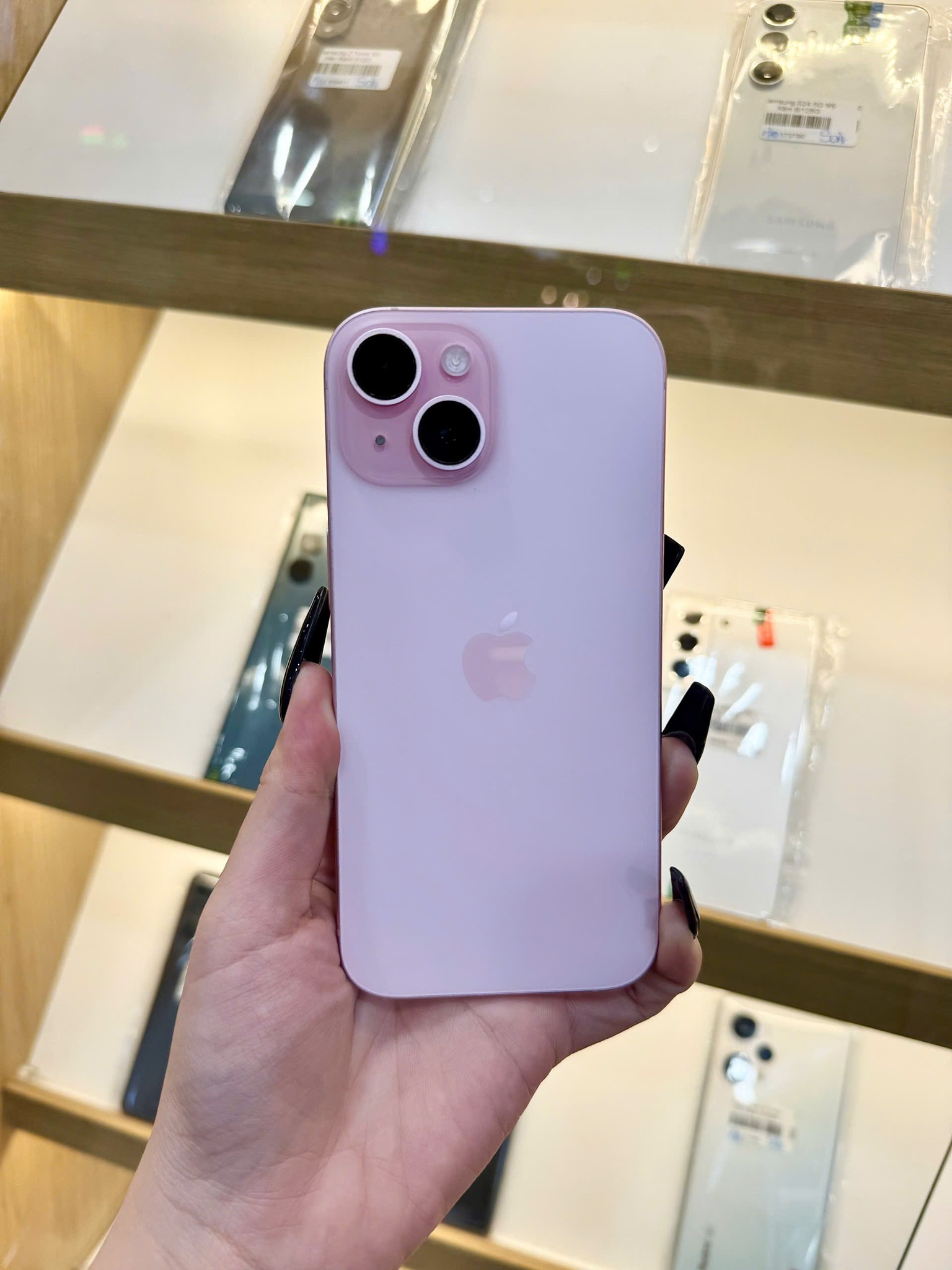 Dù sở hữu màn hình 6.1 inch Super Retina XDR siêu đẹp, iPhone 15 vẫn rất gọn gàng, dễ cầm và nhẹ tay. Phần viền bo mềm mại, chất liệu kính pha màu hồng pastel giúp máy nổi bật mà vẫn cực kỳ nữ tính, tinh tế và cuốn hút.