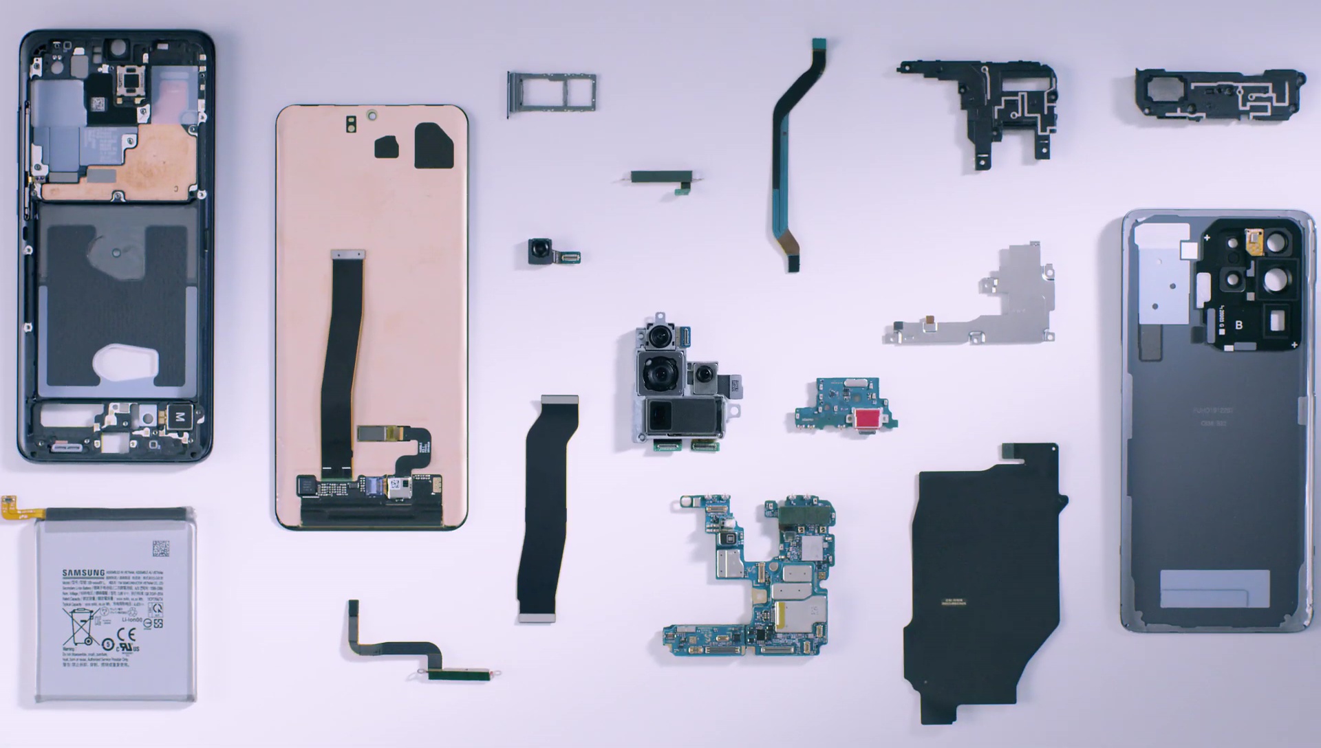 Toàn bộ linh kiện bên trong của Samsung Galaxy S20 Ultra.