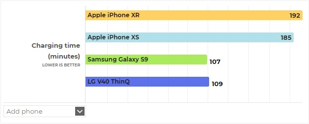 Mặc dù vậy, khi đem iPhone XR so sánh với các mẫu Android phone khác trên thị trường về thời lượng dùng pin, đặc biệt là thời lượng chơi video trên YouTube, thì iPhone XR lại chỉ ở trên mức trung bình một chút so với đại đa số thị phần smartphone Android hiện tại.