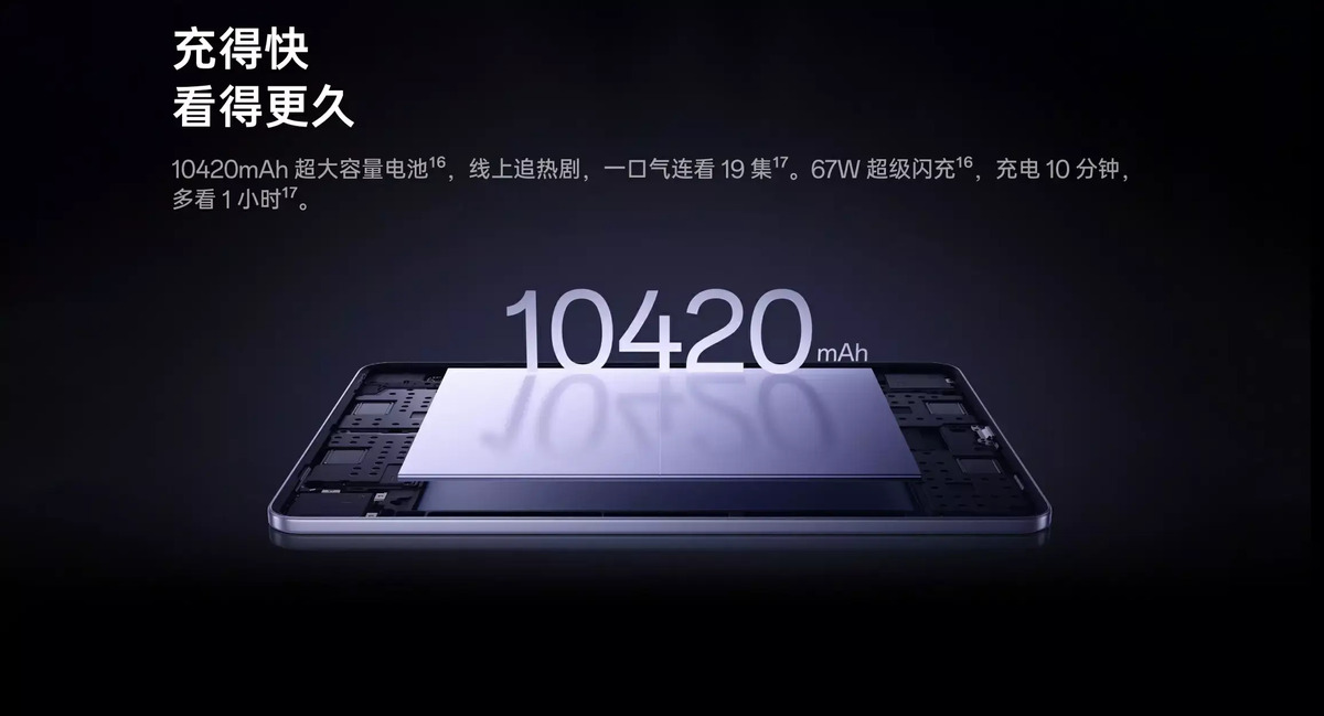 Viên pin 10.420 mAh cho thời gian sử dụng lên đến cả ngày dài, đáp ứng tốt nhu cầu học tập, làm việc và giải trí. Với sạc nhanh SuperVOOC 67W, chỉ cần 10 phút sạc là có thể xem video liên tục trong 10 giờ – cực kỳ tiện lợi cho người bận rộn hoặc thường xuyên di chuyển.