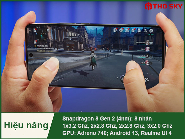 Hiệu năng của Realme GT 5 được cung cấp bởi chip Snapdragon 8 Gen 2 siêu mạnh nó là bản nâng cấp của Snapdragon 8+ Gen 1 đang được tích hợp trên Realme GT 3. Và dĩ nhiên, GT5 sẽ mạnh mẽ hơn GT3 từ 20-25%.
