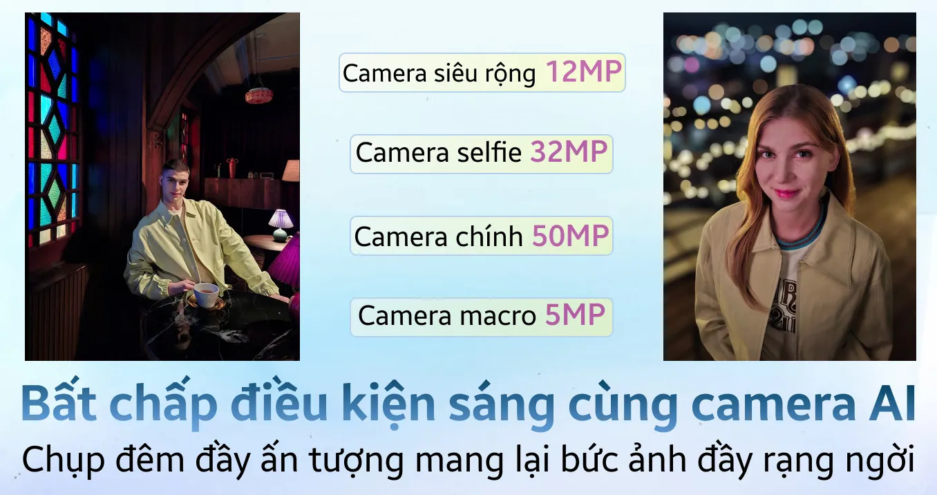 Camera selfie 13MP hỗ trợ AI làm đẹp tự nhiên