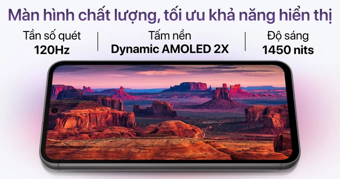 Trang bị màn hình 6.4 inch Dynamic AMOLED 2X, độ phân giải Full HD+ cùng tần số quét 120Hz, hiển thị của S23 FE sắc nét – mượt mà – cực kỳ đã mắt. Dù bạn lướt web, xem phim hay chơi game đều “nuột” không điểm chê.