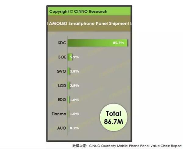 Mặc dù vẫn giữ vị trí đầu bảng, tuy nhiên thị phần của Samsung trong thị trường màn hình AMOLED đã giảm chỉ còn 85.7%, thấp hơn đến 10% so với năm ngoái.
