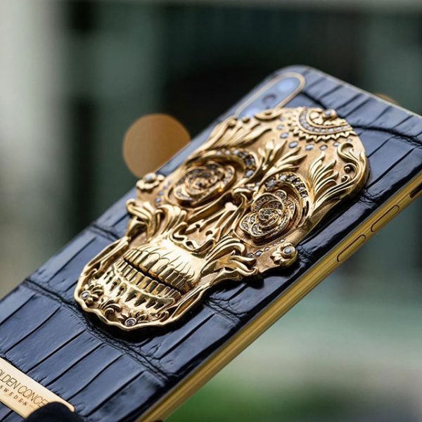 Chiếc iPhone xa xỉ này có tên iPhone Sugar Skull Edition, và đây là một trong những “sáng tạo” đắt đỏ nhất mà Golden Concept từng tạo ra. Chủ sở hữu sẽ được cầm trên tay một chiếc iPhone Xs Max với hình đầu lâu cực cool ngầu bằng vàng “được chạm khắc bởi những bậc thầy thủ công”.
