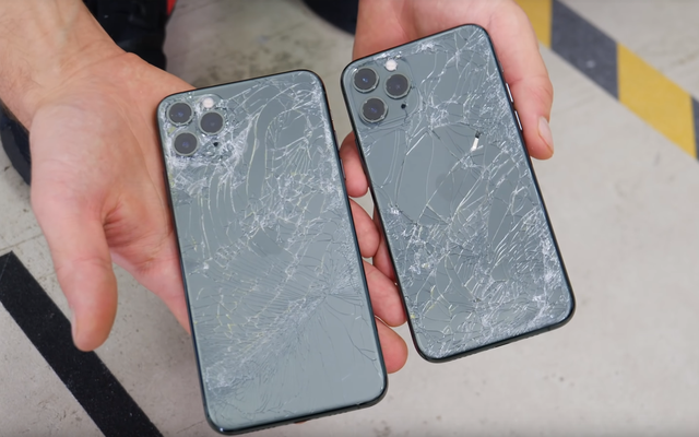 Cả hai chiếc iPhone 11 Pro và iPhone 11 Pro Max đều bị vỡ tan nát cả 2 mặt khi thả rơi ở độ cao 3m