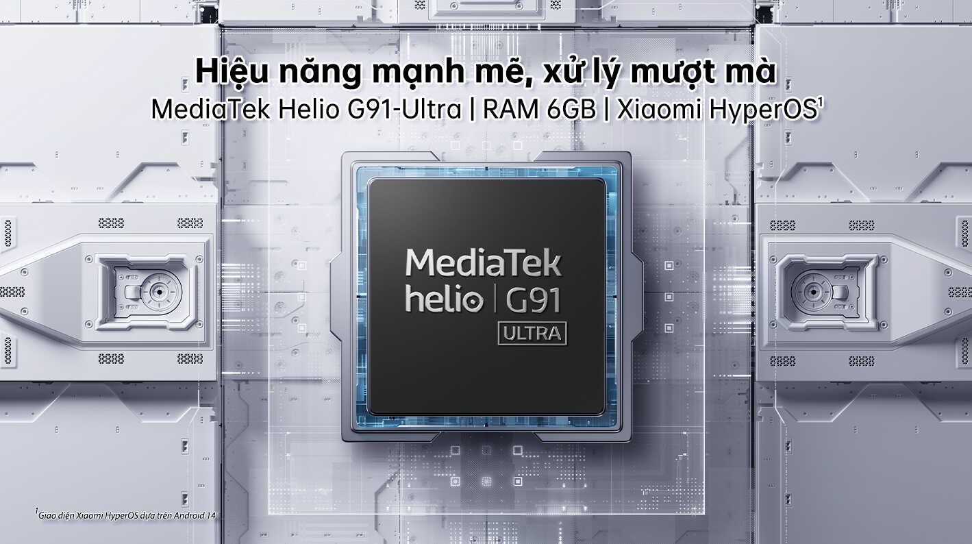 Máy sử dụng vi xử lý MediaTek Helio G91 Ultra 8 nhân, kết hợp với RAM 6GB và bộ nhớ trong 128GB, cho phép chạy mượt mà các tác vụ hàng ngày như lướt web, xem video và sử dụng mạng xã hội. Ngoài ra, máy hỗ trợ thẻ nhớ MicroSD lên đến 1TB, mở rộng không gian lưu trữ khi cần thiết
